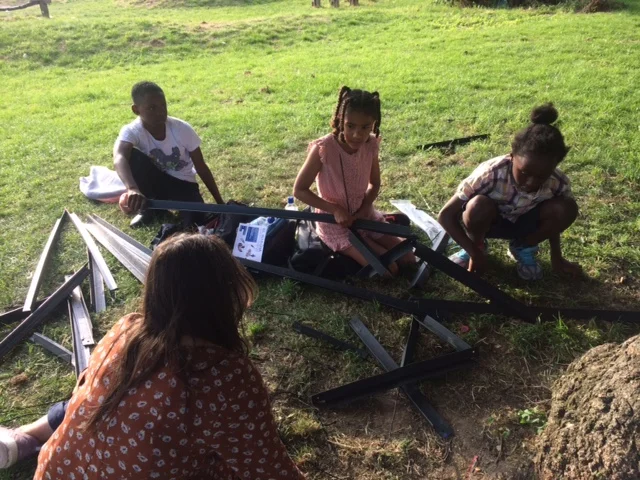 Cet atelier hebdomadaire explore les moyens par lesquels les résidents locaux et en particulier les enfants peuvent créer des installations d'art temporaires et du mobilier pour leur parc local. Nous travaillons avec un plastique recyclé d'origine locale et développons des sculptures temporaires qui, nous l'espérons, pourraient inspirer un nouvel usage du parc.